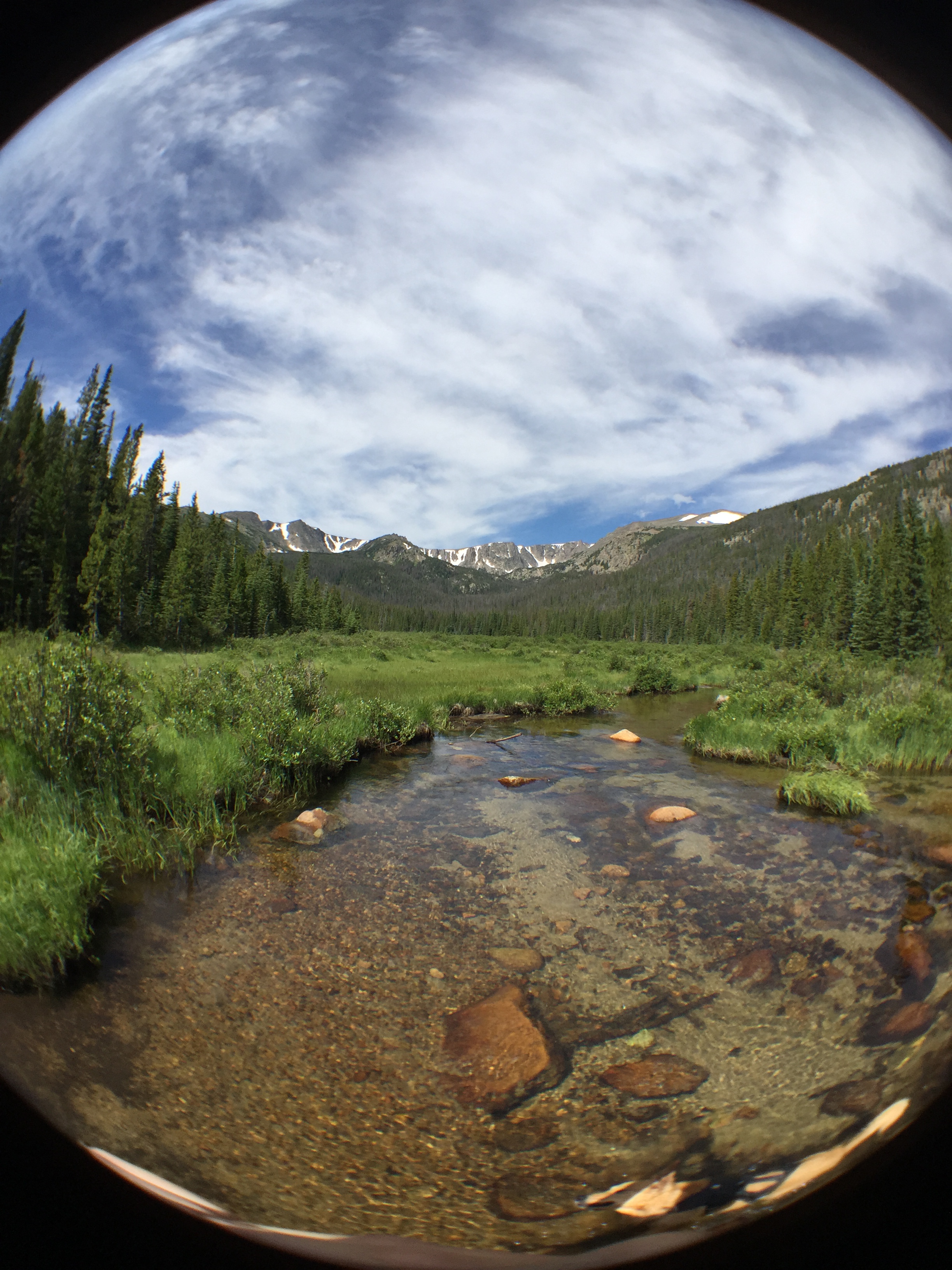 We’ve only gone on three hikes this summer due to all the snow and other weekend activities. The first hike of the year was to Diamond Lake in the Indian Peaks Wilderness. A familiar hike for us. To me personally, this hike’s high points are on the way up to the destination. There are views of huge waterfalls and peaks, you get to walk across a couple waterfalls, and by some very large cascades. You reach a meadow before Diamond lake that is full of wildflowers. Then you reach Diamond lake surrounded by high peaks. If you explore a little further you’ll find a little inlet stream entering the lake. This stream originates from Upper Diamond Lake which can be accessed by hiking just a bit further.